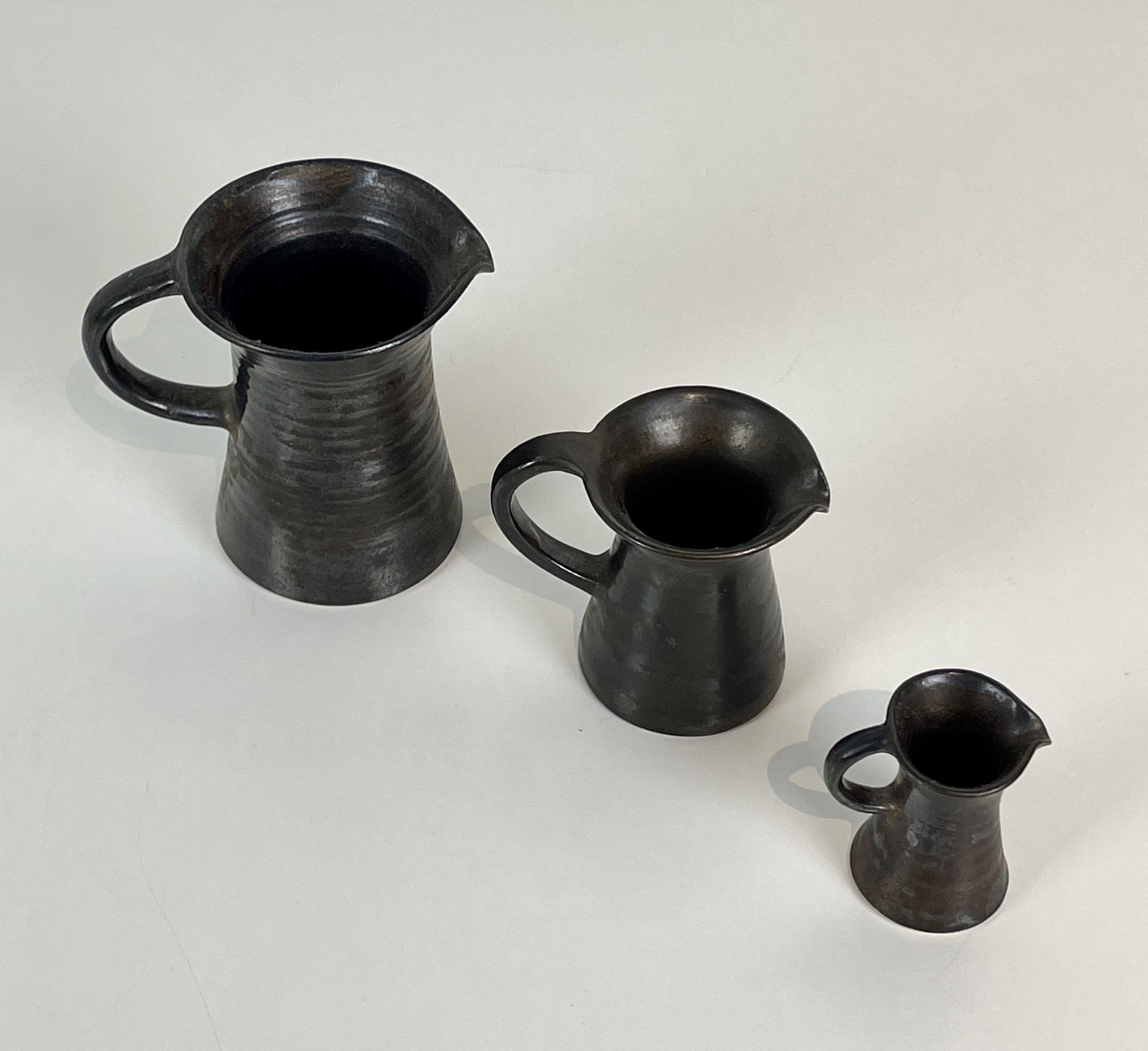 3 turned ceramic jugs with bronze glaze, 1961!, very early work from my own studio.