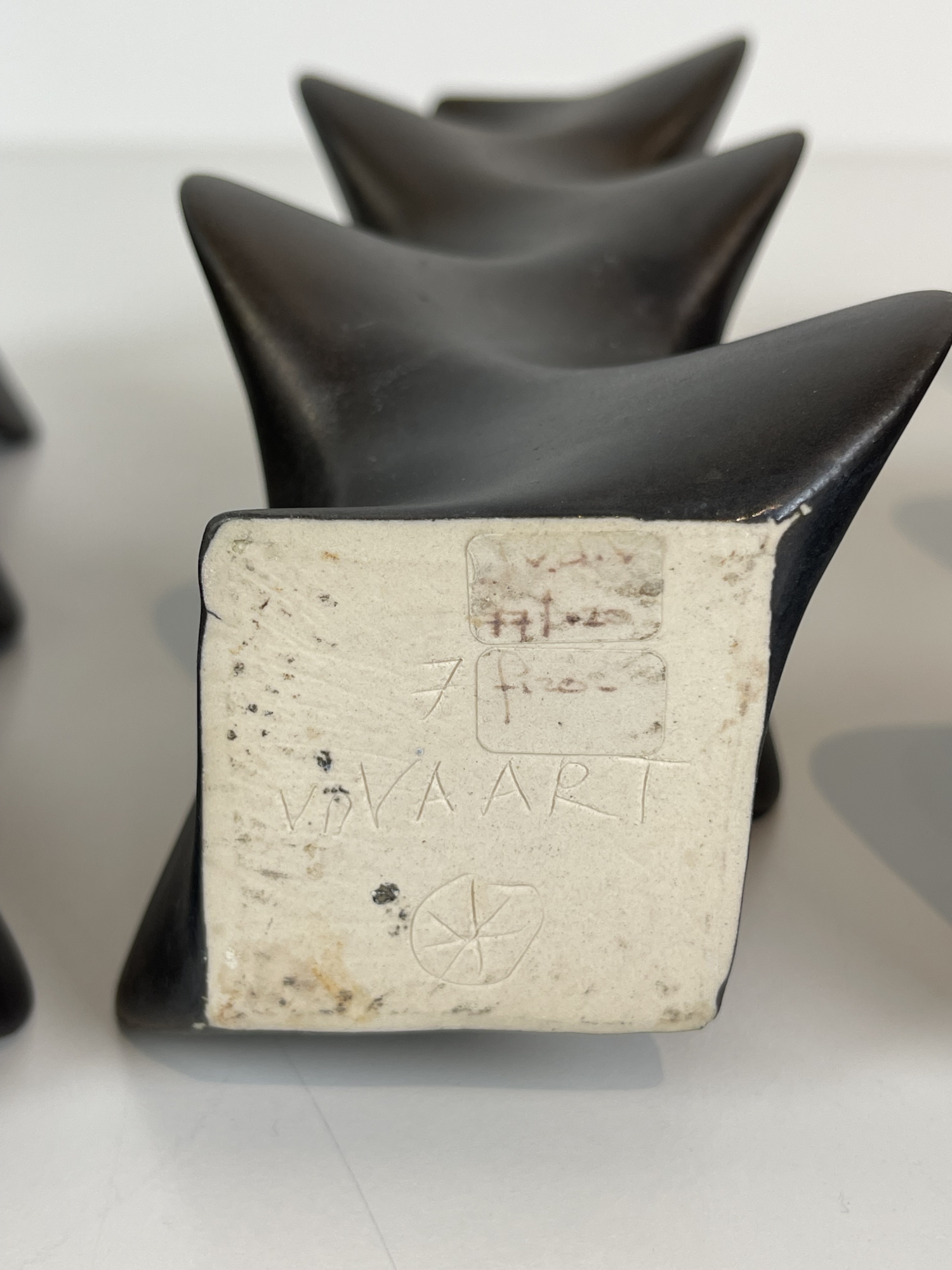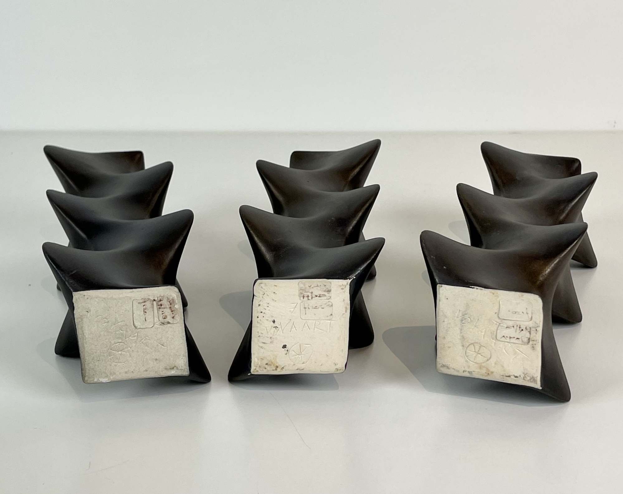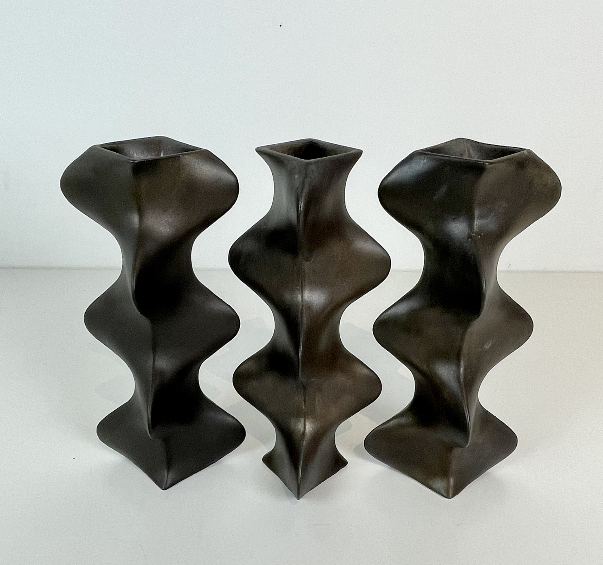 Set of three bronze-glazed stoneware multiple vases, designed and executed in 1977, made in own studio. Lit: Jan van der Vaart, Princessehof, Leeuwarden 1997, Fig. 34