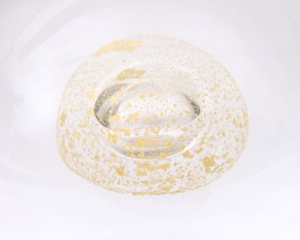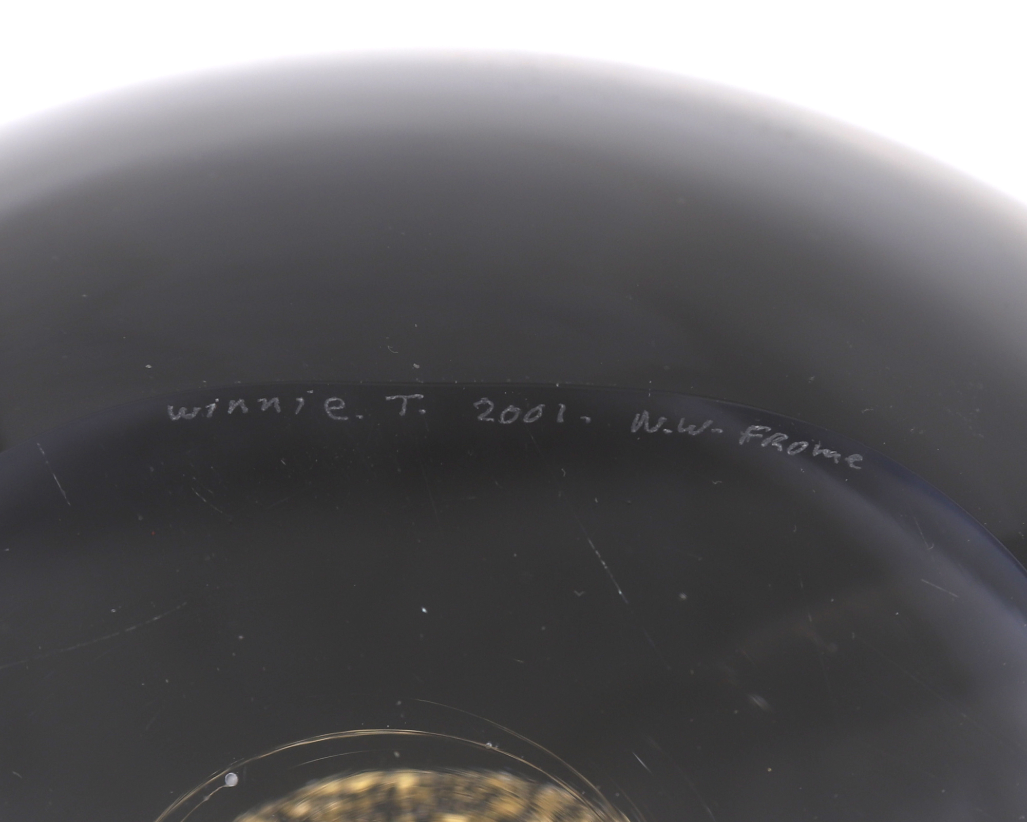 Een rond glazen object intern gedecoreerd met bladgoud-inclusie, titel ‘Core’, ontwerp Winnie Teschmacher, uitvoering Neil Wilkin, Engeland, 2001. Gesigneerd: Winnie T. 2001 N.W. Frome. Herkomst: Leon Salet, Maastricht.